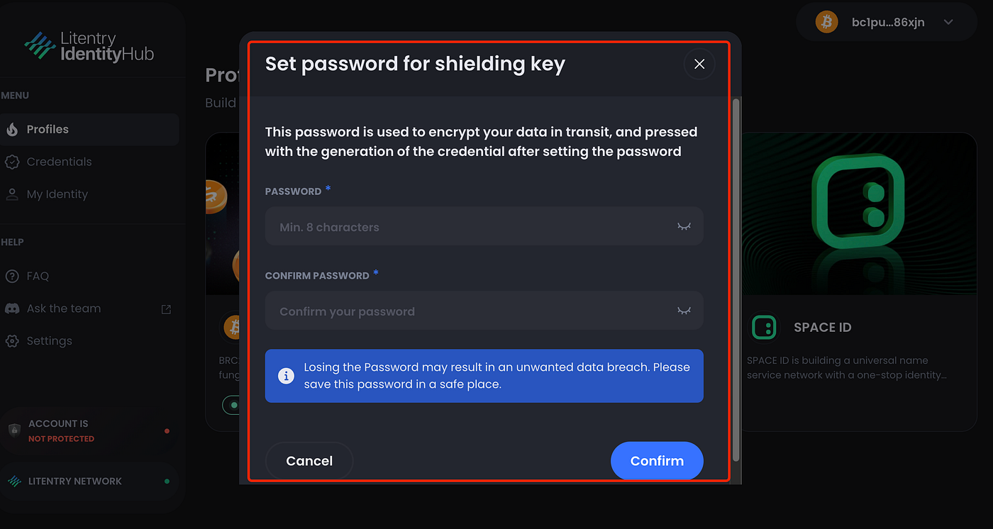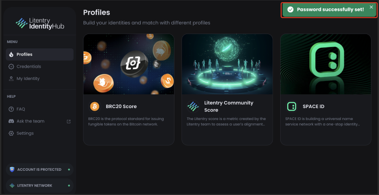 After successfully setting the password, you can enter the BRC20 space to start verifying credentials.