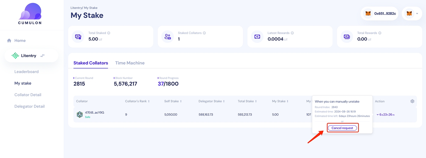 Step 7: During the cooldown period, you can cancel the unstake action if needed.