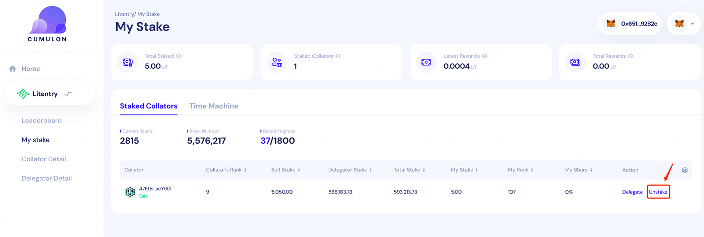 Execute the Unstake: Once the cooldown period ends, click on the “Execute” button to confirm and complete the unstake. This action finalizes the process, and your staked LIT will be available in your wallet.