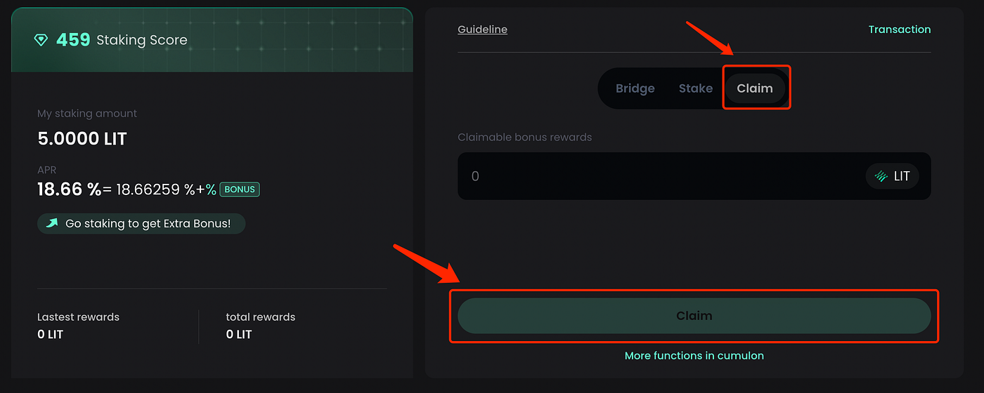 Rewards from the original Heima staking pool will automatically be credited to your wallet. However, bonus rewards must be manually claimed.