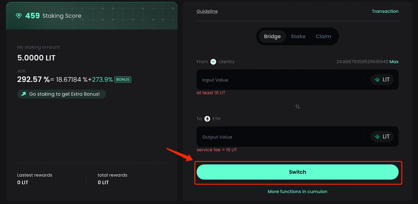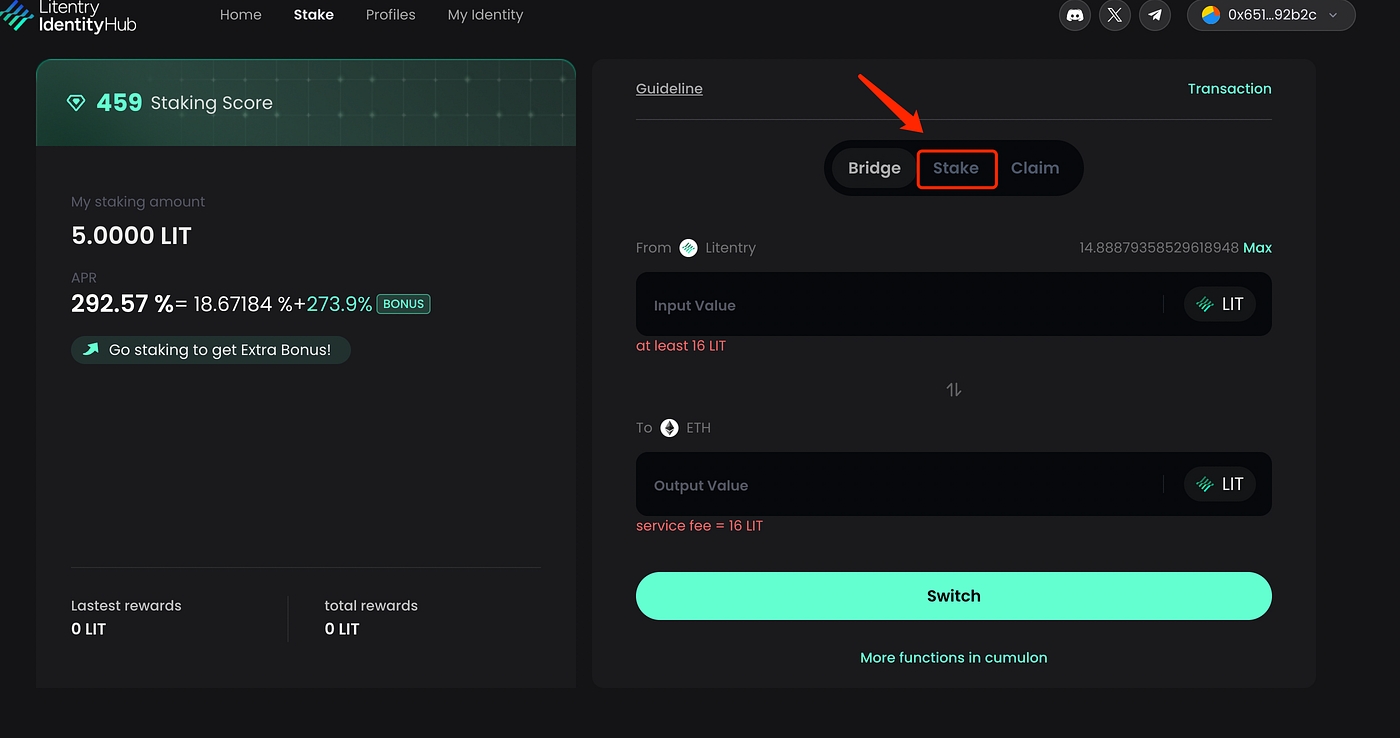 Minimum Staking Requirements: Keep in mind the minimum staking amounts for both staking and bridging processes (5 LIT for staking, 16 LIT for bridging).
